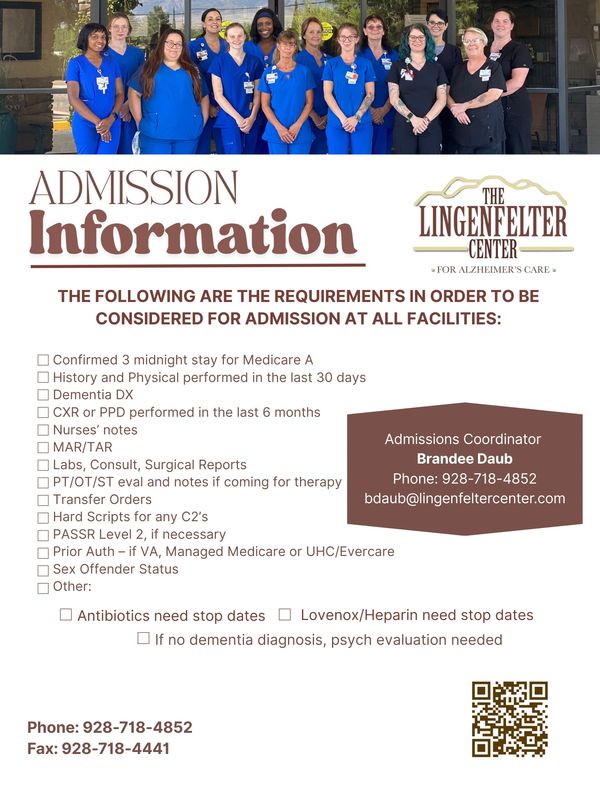 Admission day can feel very stressful for residents as well as family. We understand that major health events, hospital stays and declining health are not easy to navigate. We strive to make the admissions process as seamless and comfortable as possible.